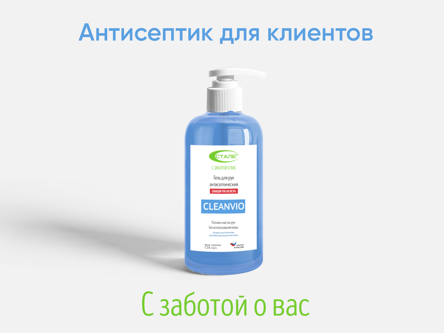 Мы знаем, как не просто сегодня найти антисептические средства и другие средства защиты, поэтому договорились с "CLEANVIO" и произвели уникальный тираж антисептического геля для наших клиентов.